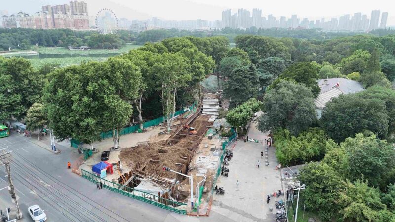 6月4日,龍湖公園內施工場景。