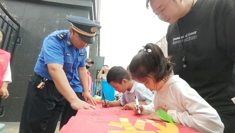 最有趣的環節是“簽名承諾”。一條印有“垃圾分分類,資源不浪費”的紅色條幅鋪展開來,孩子們用彩色畫筆鄭重地簽下自己的名字。歪歪扭扭的字跡背后,是一顆顆從小踐行環保的決心。