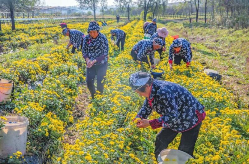 潘集區(qū)祁集鎮(zhèn)黃崗村黃晶灣淮畔皇菊喜獲豐收,金黃花海隨風搖曳,淡淡的菊香沁人心脾。村民們來回穿梭采摘,指尖翻飛,忙碌的身影與絢爛的花海相映成趣,勾勒出一幅菊花飄香、豐收喜人的鄉(xiāng)村振興畫卷。