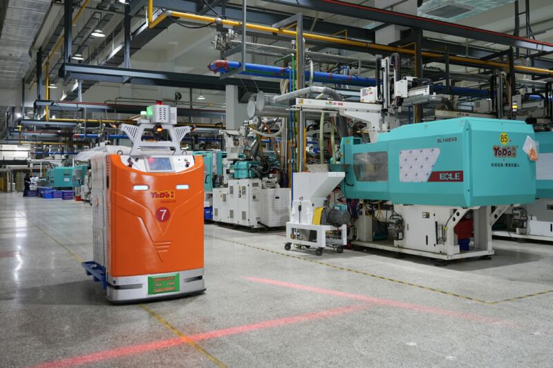 安徽有度智能機器人有限公司是一家坐落于壽縣經濟開發區,集研發、生產、銷售教育機器人的專業高科技現代化企業。其廠區從模具制造到注塑生產,再到分包、包裝等環節,大量采用智能機器裝備,用新質生產力挖潛力提效能,實現了高質量發展。圖為該公司已實現無人化運行的產品生產及零部件配送車間。