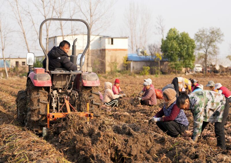 11月25日上午,田家庵區史院鄉尹祠蜜薯基地趁著晴好天氣抓緊搶收蜜薯。隨著拖拉機的轟鳴,一壟壟蜜薯從泥土中翻滾而出,村民們三三兩兩一組,忙著對蜜薯進行分揀、裝袋。據悉,該基地今年種植蜜薯350余畝,預計將于12月初搶收完成。