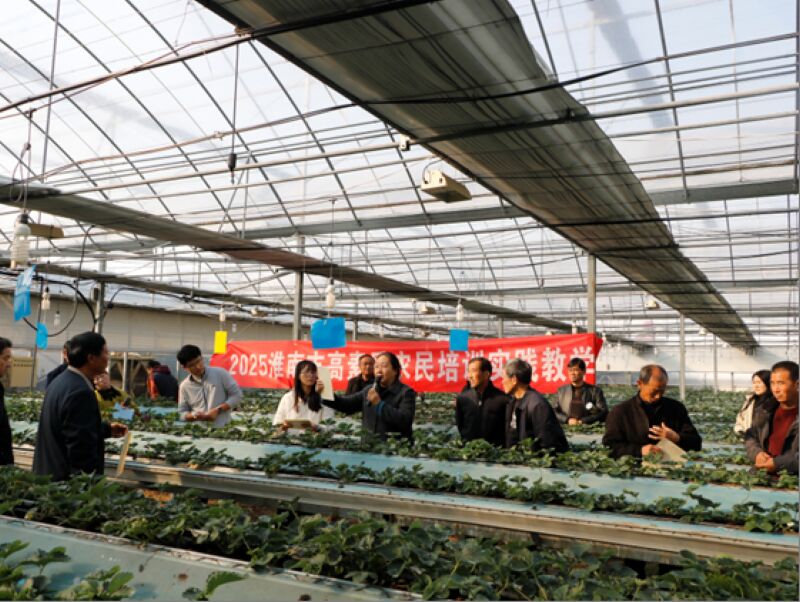 據(jù)了解,此輪培訓班為我市承擔的2025年高素質農(nóng)民培育項目的一部分,前期已進行了“農(nóng)民素養(yǎng)+專業(yè)技能”的理論培訓。考慮到學員多為來自田家庵區(qū)曹庵鎮(zhèn)及史院鄉(xiāng)的草莓種植戶,因此實踐教學活動安排在起步較早、產(chǎn)業(yè)發(fā)達的“中國草莓之都”——長豐進行,由市農(nóng)科院草莓專家現(xiàn)場教學、答疑解惑。