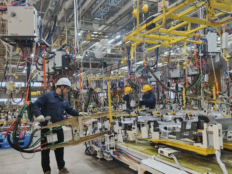 近日,在開沃汽車(淮南)有限公司焊裝車間里,工人們在生產(chǎn)線上忙碌。開沃汽車(淮南)有限公司主要從事新能源物流車的研發(fā)、制造、銷售及服務,已形成以新能源商用車、新能源乘用車為核心的產(chǎn)品線,產(chǎn)品涵蓋 4-18米全系列新能源汽車產(chǎn)品,可廣泛應用于公交、旅游、通勤、物流、環(huán)境治理、居家出行等多個領域。目前,廠房施工已基本完成,設備安裝調(diào)試工作正有序推進。其中,總裝車間與焊裝車間已正式投產(chǎn)。項目全面建成后,將形成年產(chǎn)5萬臺輕型商用車的生產(chǎn)能力。