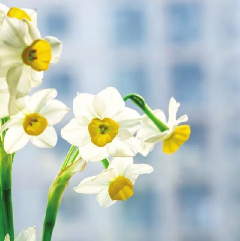 淮南的大雪“花代”——水仙是石蒜科水仙屬多年生草本植物,是中國傳統的觀賞花卉,自唐代從歐洲引進已有1000多年,并演化出獨特的中國水仙。目前僅東南沿海島嶼有自然生長的水仙,其它地方的水仙均為人工栽培。中國水仙球莖雪白、形如洋蔥,既可水培,也可土栽。每球可抽花1-7枝,花瓣多為6片,其瓣潤如玉,白如絹,輕如紗,細細長長的淡黃色花蕾散發出清香氣息,令人陶醉。目前淮南市區雖未發現成片的水仙栽植,但在居民家中、辦公場所、博覽展會、苗圃溫室、花卉市場等處均常見其身影。2011年,山南新區一條從民惠街至淮南南站的南北城市次干道被命名為“水仙路”。我們希望這條道路能夠早日路如其名,遇見水仙。水仙耐寒,大雪正是其綻放時節,謹以水仙作為大雪節氣的淮南代表性花卉。