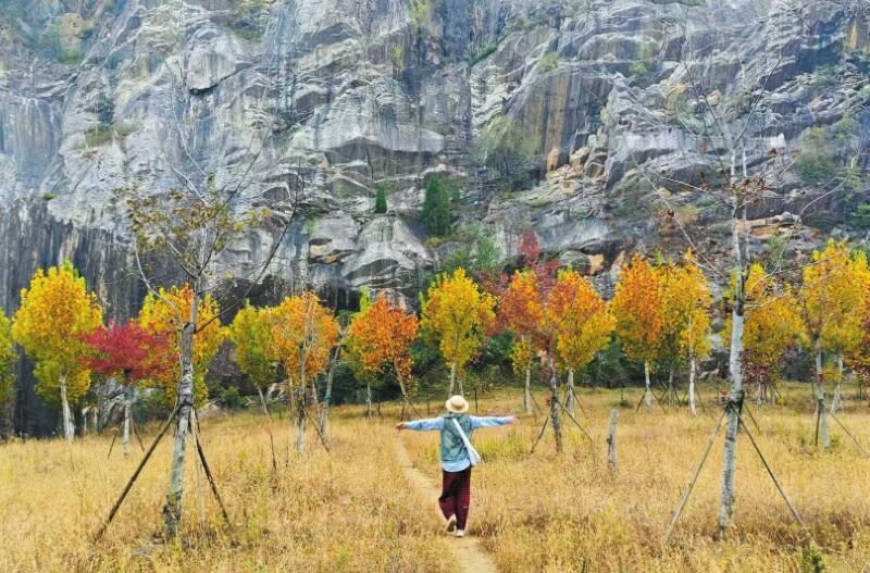 舜耕山脈長山段山北,斷壁陡峭如裁,多處斷面錯落有致,猶如一幅幅天然的立體壁畫。在這兒,每一道褶皺里都藏著地質變遷的余韻,每一處棱角都裹著草木生長的清息。游人尋跡而來,或駐足仰觀崖壁的肌理,或俯身輕觸石面的涼潤,當山風裹著落葉漫過肩頭,便覺這天地造化的意趣,那么的妙不可言。