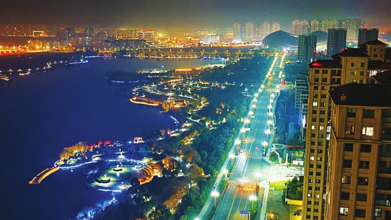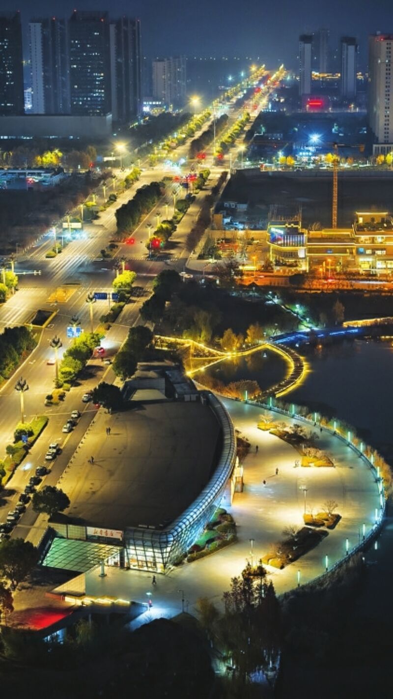 夜幕降臨,車流蜿蜒,璀璨的燈光在樓宇間流轉(zhuǎn)、在街道上延伸,交織成熠熠生輝、星光點(diǎn)點(diǎn)的銀河帶,將夜空與大地溫柔相連,一輪紅月相映,盡顯都市夜景的繁華與浪漫。