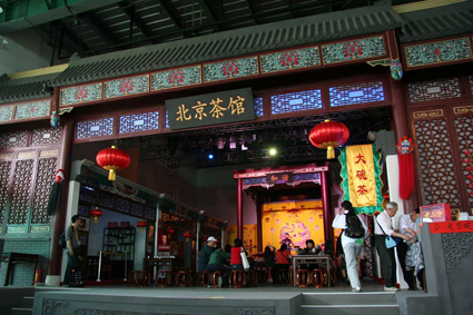在世博會上展示中華五千年悠久歷史文化和現代中國的藝術發展進程,除了中國館及省區市聯合展區外,另一個主要的場地就是“寶鋼大舞臺”。世博會的文化重頭戲——“中國元素”就薈萃于此,全國各地文化周活動的精彩演出和非物質文化遺產傳習、展示均在大舞臺輪番亮相。例如在北京活動周期間,北京方面就將“老舍茶館”、“北京四合院”原汁原味地復制了進來。6月下旬的安徽活動周,我們淮河地域文化也將在此展演。