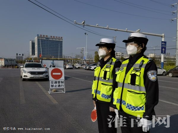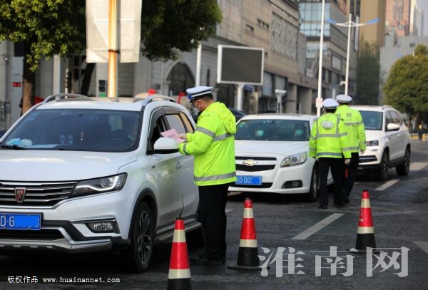 4月5日,朝陽中路,交警在逐車檢查疫情防控期間通行證。(淮南日報全媒體記者 張越 攝)