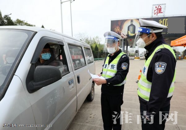 4月5日,高速公路淮南南收費站,交警在查驗來淮車輛信息證明。(淮南日報全媒體記者 張越 攝)