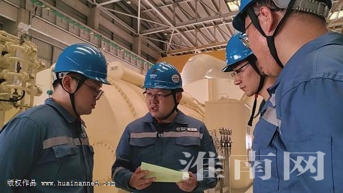 6月5日,淮河早報、淮南網記者來到淮南平圩發電有限責任公司采訪時,陶訓和團隊的小伙伴剛從檢修現場回來。由于檢修現場十分悶熱,取下安全帽時,他的頭發已經濕透了。抖抖臉上和發梢上的汗水,扯了扯貼在后背的工作服,陶訓憨厚地笑著說:“檢修完畢,一切正常。”