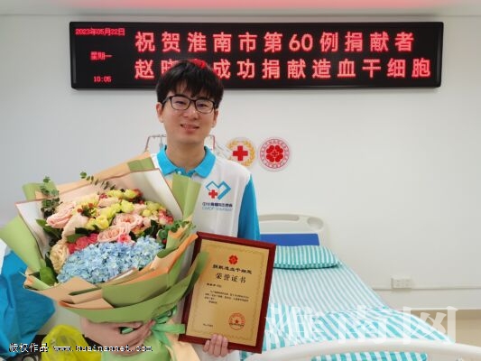 5月22日,即將畢業的安徽理工大學化學工程學院“00后”大四學生趙曉宇完成了一份人生中最特別的“畢業答卷”——為一位素不相識的血液病小患者捐獻了造血干細胞,他也因此而成為淮南市第60例、安理大第21例造血干細胞捐獻者。