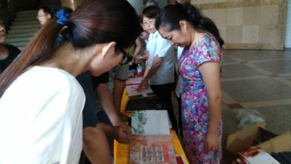 現場還展出了“七七抗戰十周年”、“銘記歷史,珍愛和平”等一系列抗戰題材的郵票,吸引了很多集郵愛好者的目光。短短幾個小時,紀念套票和各種紀念冊幾乎被搶購一空。