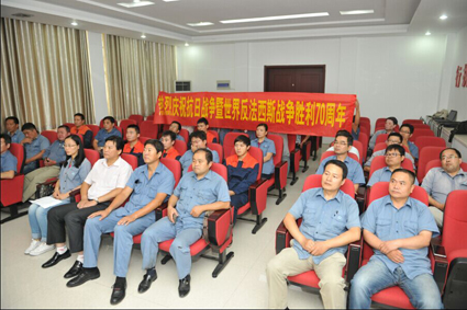 為銘記歷史,激發員工愛國熱情和民族自豪感,淮化集團組織員工集中觀看了中國人民抗日戰爭暨世界反法西斯戰爭勝利70周年紀念大會現場直播。