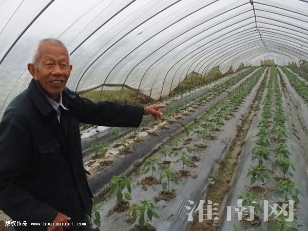 圖:毛紅本老人在為貧困戶建設(shè)的標準化大棚中